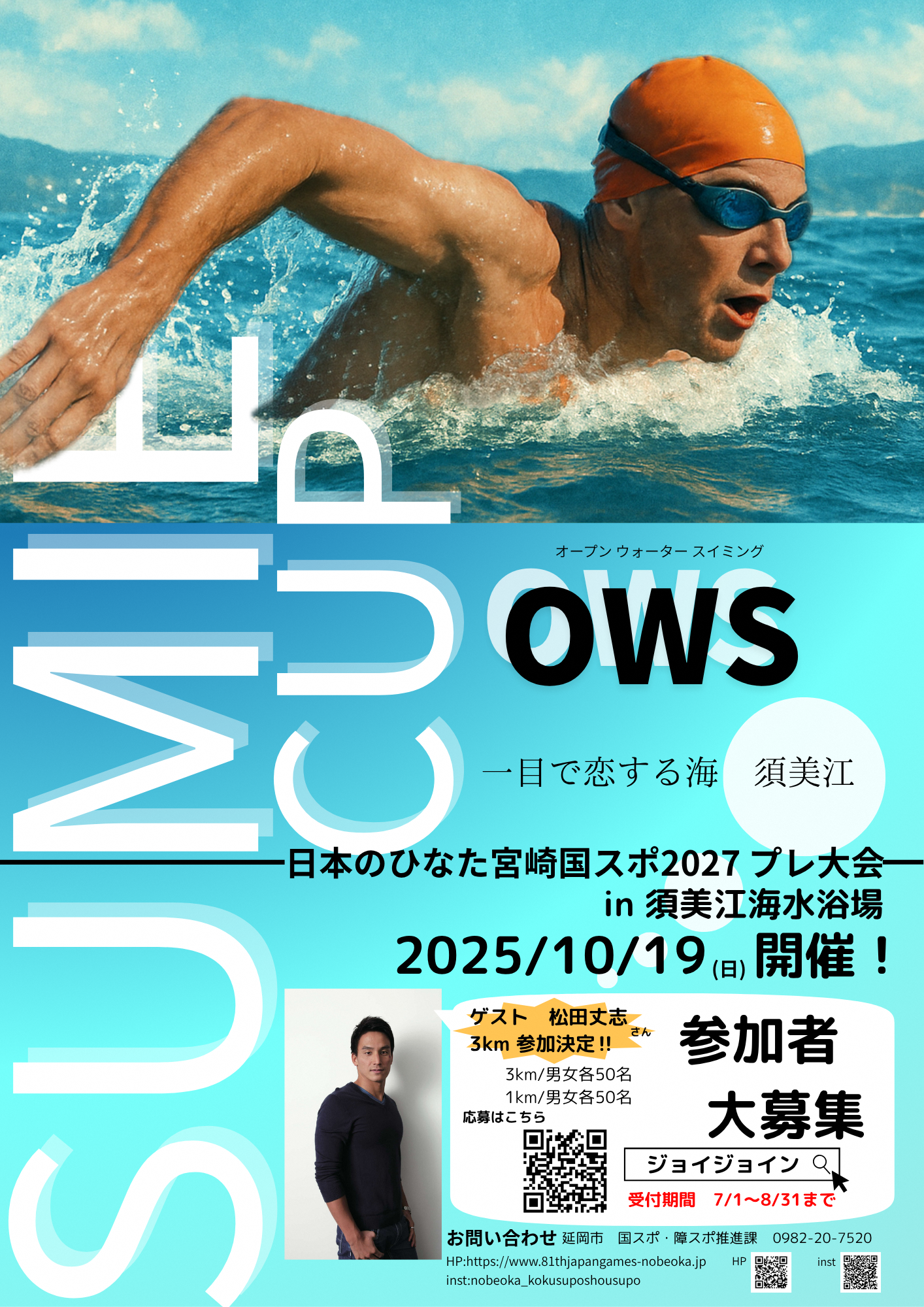 | オープンウォータースイミング〔全種別〕 | 須美江海水浴場特設会場 | 2027年9月12日(日曜日) |