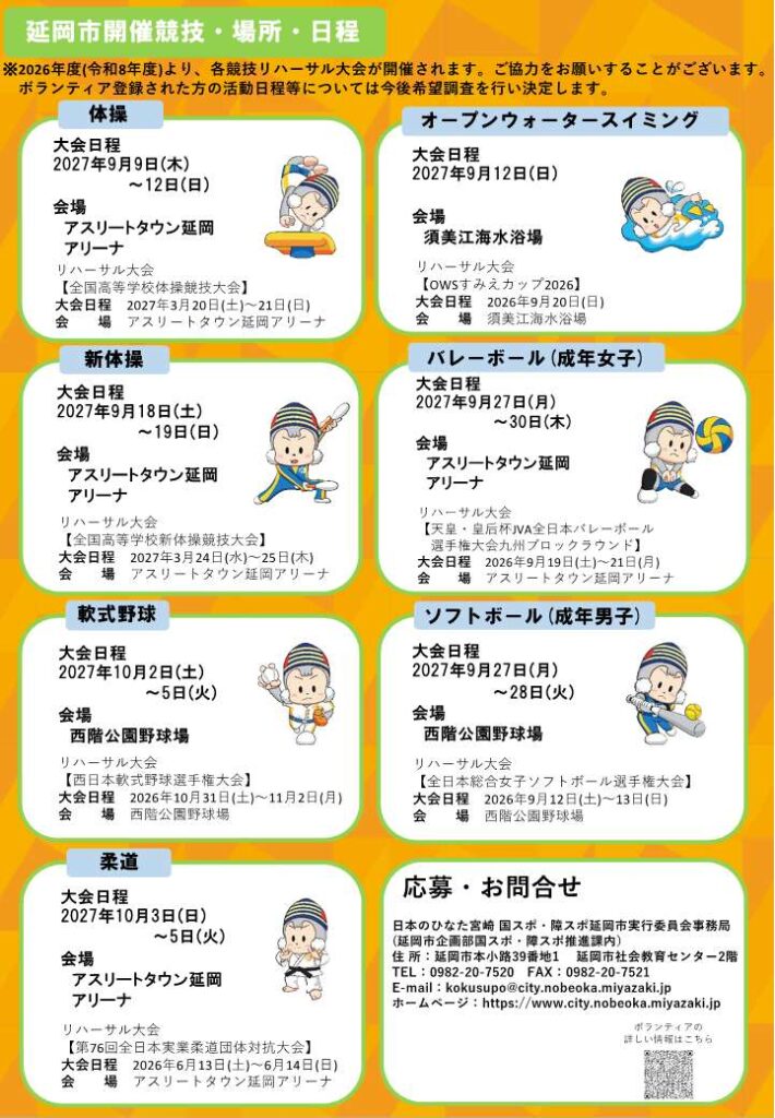日本のひなた宮崎国スポ・障スポ延岡市 ボランティア大募集!